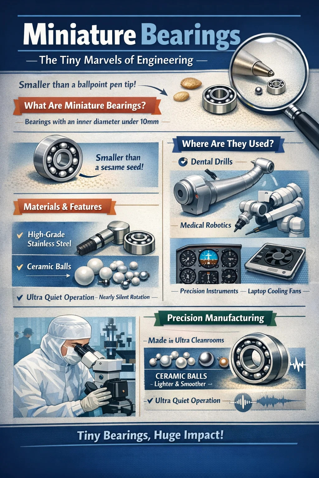 Estos pequeños rodamientos de bolas no son sólo para mostrar; solucionan problemas de rotación en equipos de alta precisión: